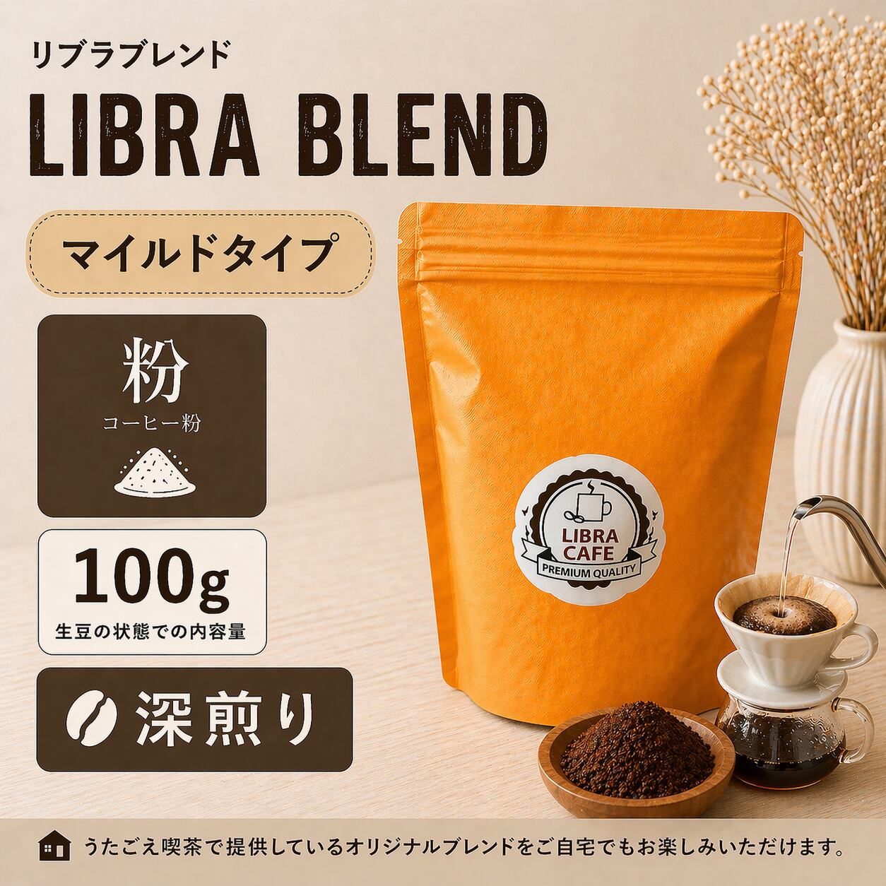 リブラブレンド(粉)100g| まろやかでバランスの良い深煎りコーヒー